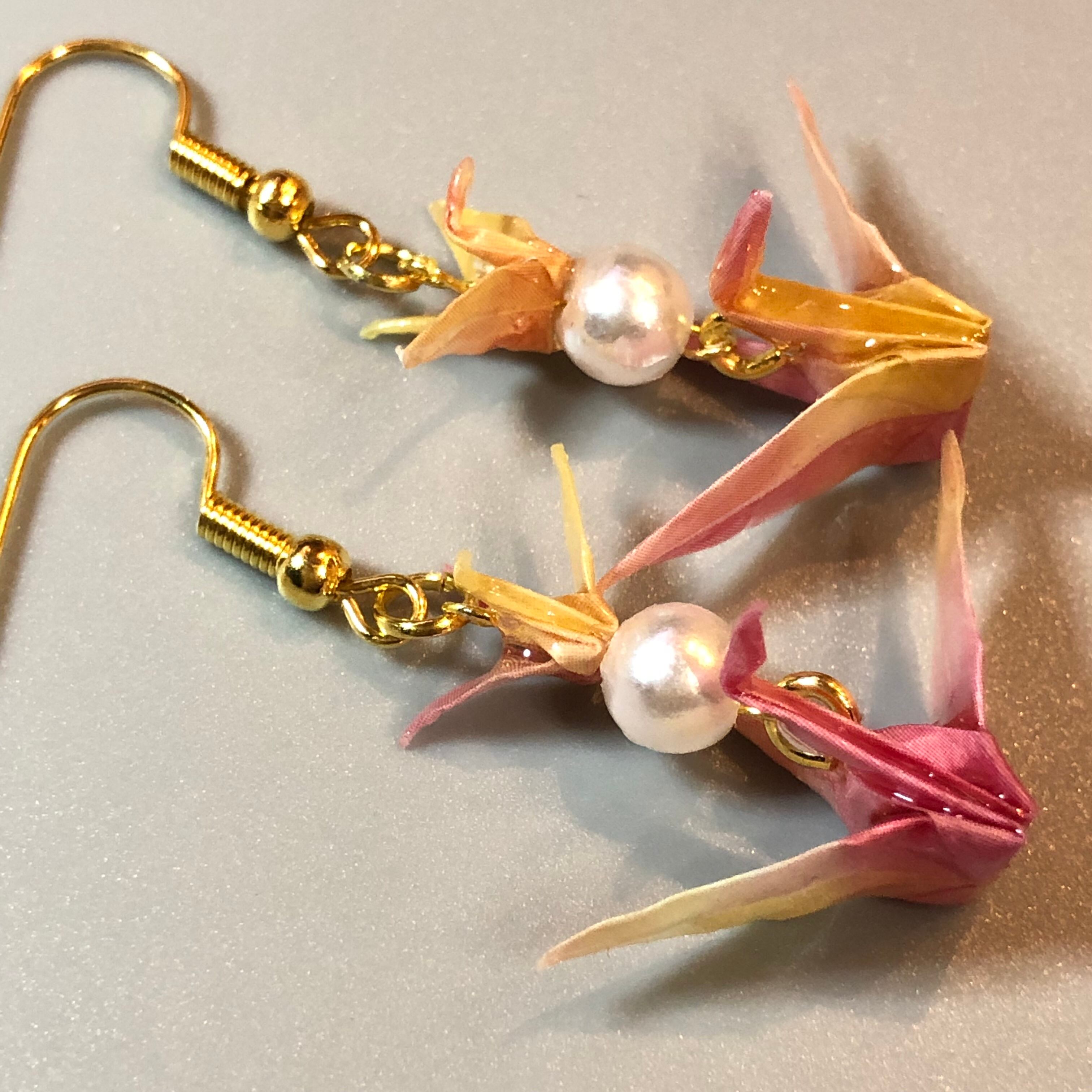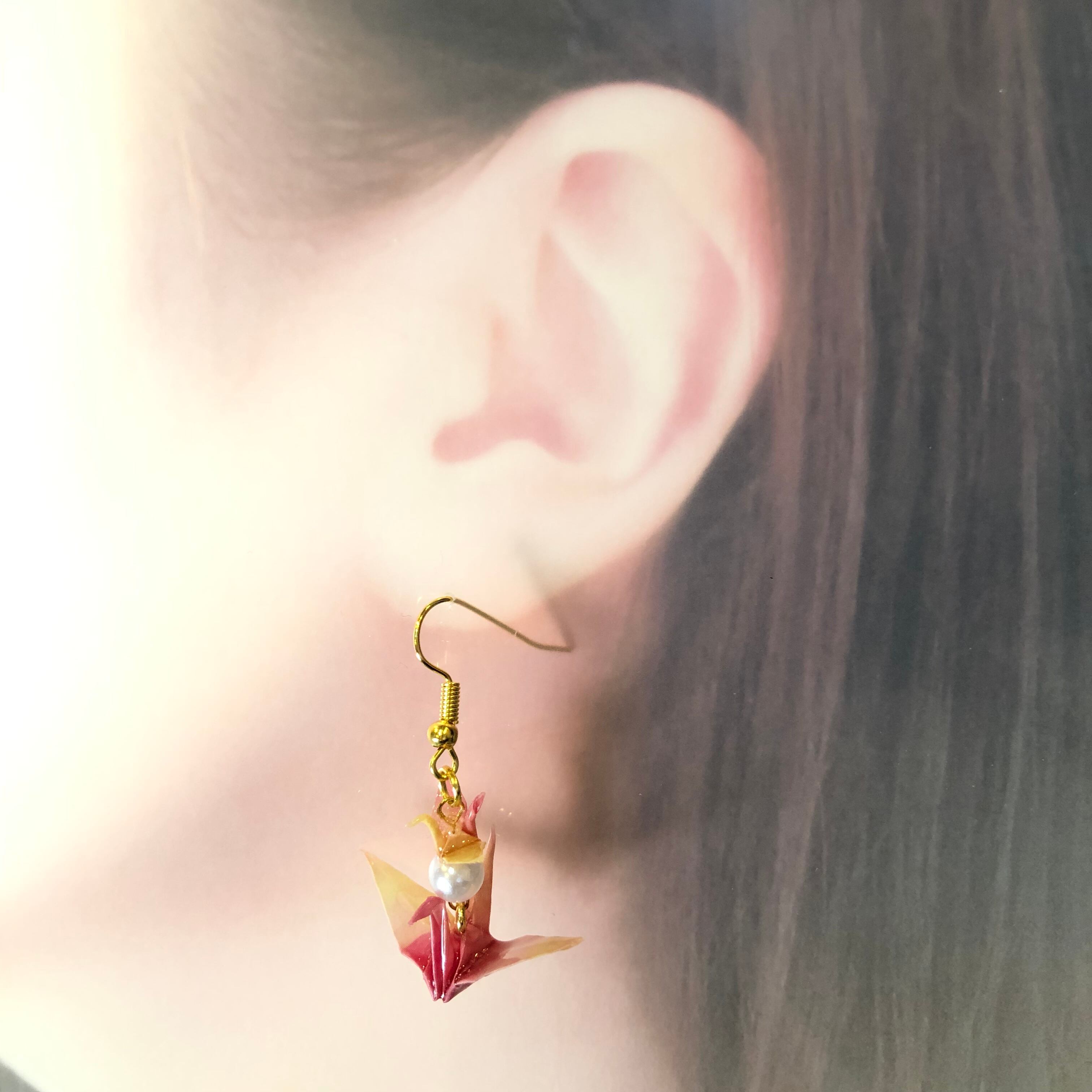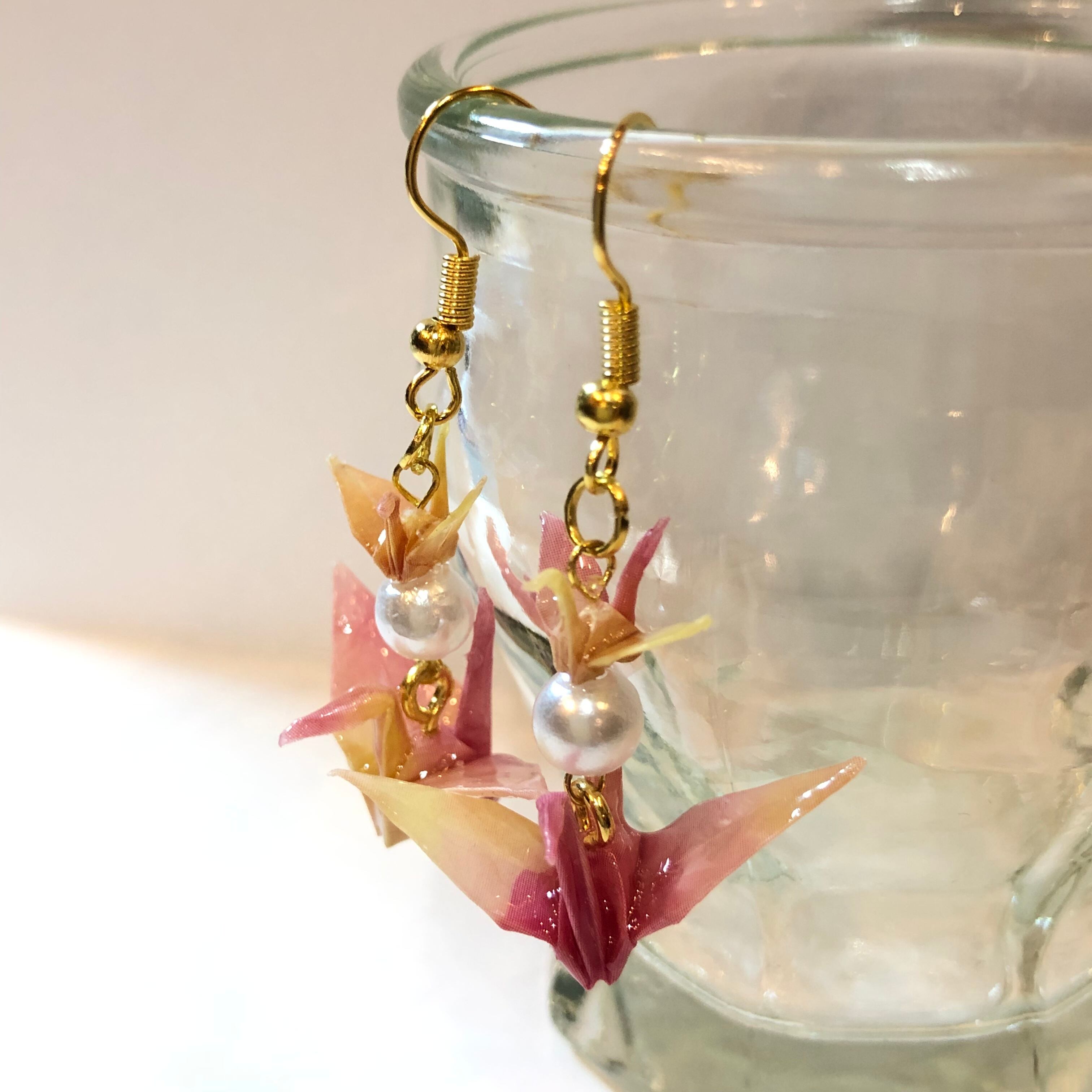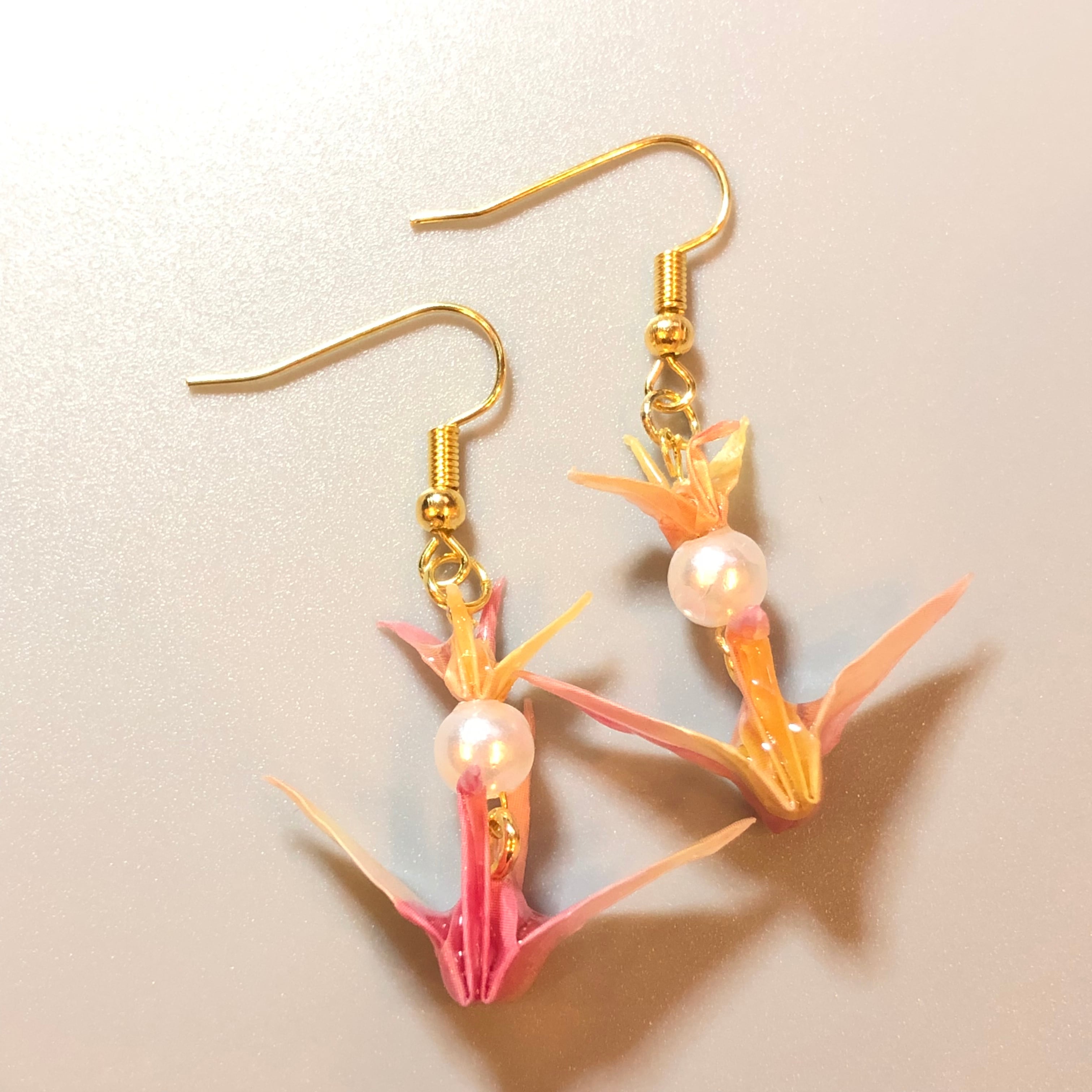 レジン レジンピアス ピアス イヤリング 耳飾り ハンドメイド ハンドメイドアクセサリー ハンドメイドピアス ハンドメイドイヤリング 折り鶴 折鶴 折り紙 折紙 折り紙ピアス 折り鶴ピアス 和雑貨 和物 浴衣 和柄 和小物 ギフト プレゼント 紙細工 キーホルダー resin jewelry craft handmade origami japanese craft key ring